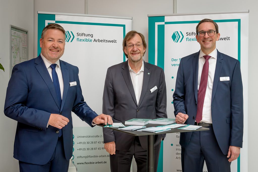 Auch der Vorstandsvorsitzende, Wilhelm Oberste-Beulmann, und der Geschäftsführende Vorstand der Stiftung flexible Arbeitswelt, Thomas Hetz, waren mit einem Vortrag vertreten, in dem sie die Stiftung und ihre Arbeit sowie den von der Stiftung initiierten Qualifizierungsbonus vorstellten.
