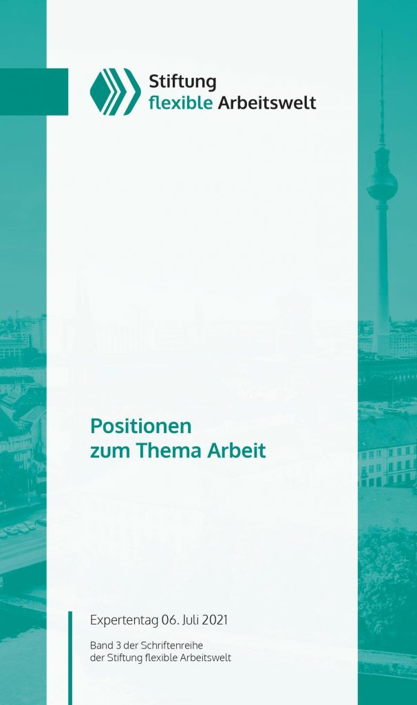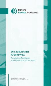 Im vierten Band der Schriftenreihe der Stiftung flexible Arbeitswelt,„Die Zukunft der Arbeitswelt – Persönliche Positionen aus Kuratorium und Vorstand“, geben die Mitglieder des Kuratoriums und Vorstands der Stiftung in verschiedenen Aufsätzen ihre individuellen Ansichten und Einschätzungen zu den aktuellen und zukünftigen Entwicklungen und Notwendigkeiten des deutschen Arbeitsmarktes wieder.